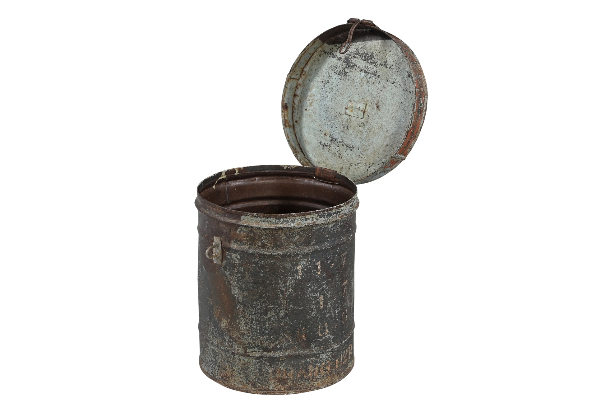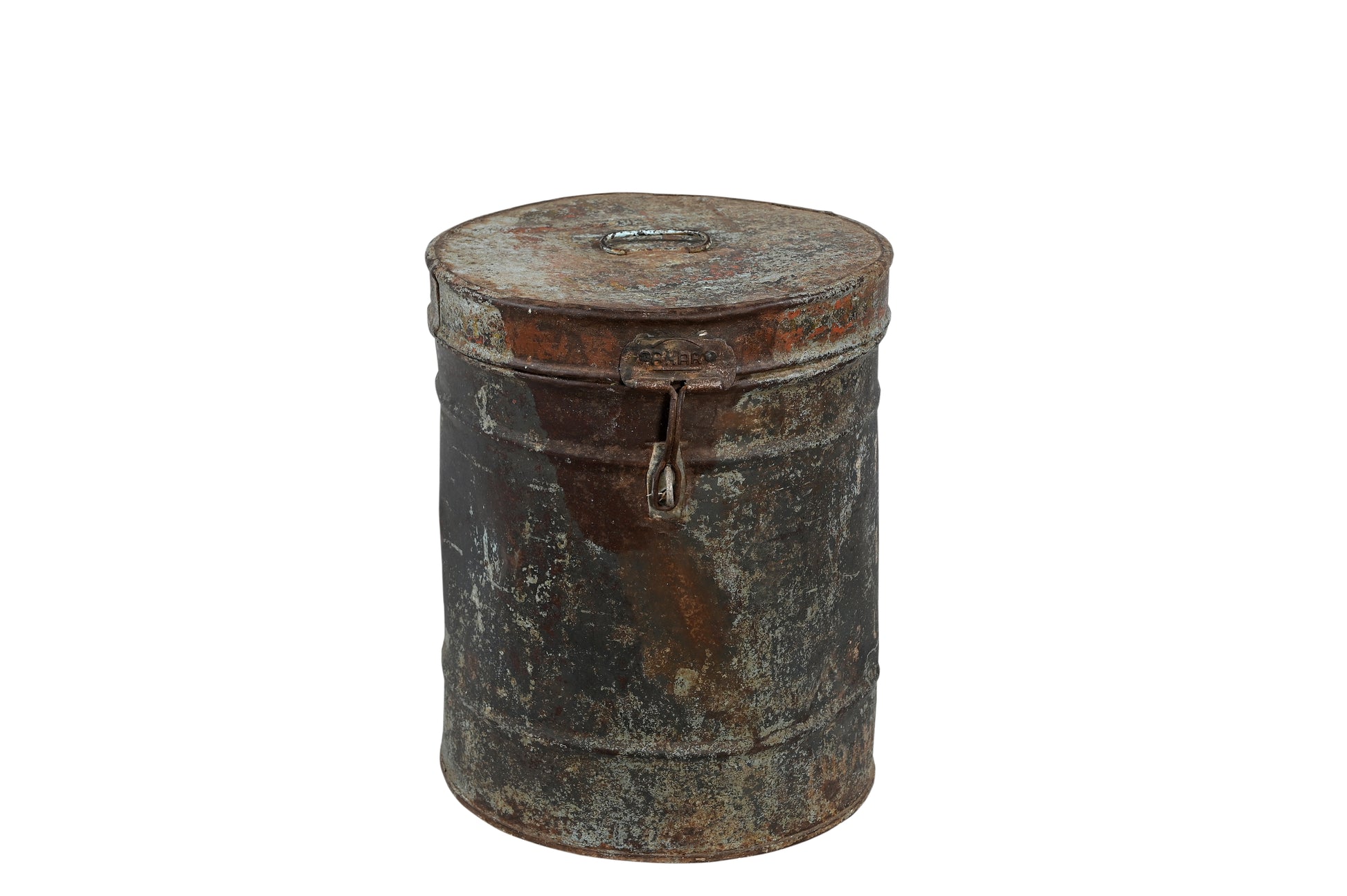 Antiguamente se utilizaba en talleres y hogares para almacenar agua, granos y artículos del hogar. Esta caja vintage está hecha de hierro con un cierre seguro y su superficie desgastada evoca la historia de su uso cotidiano.
