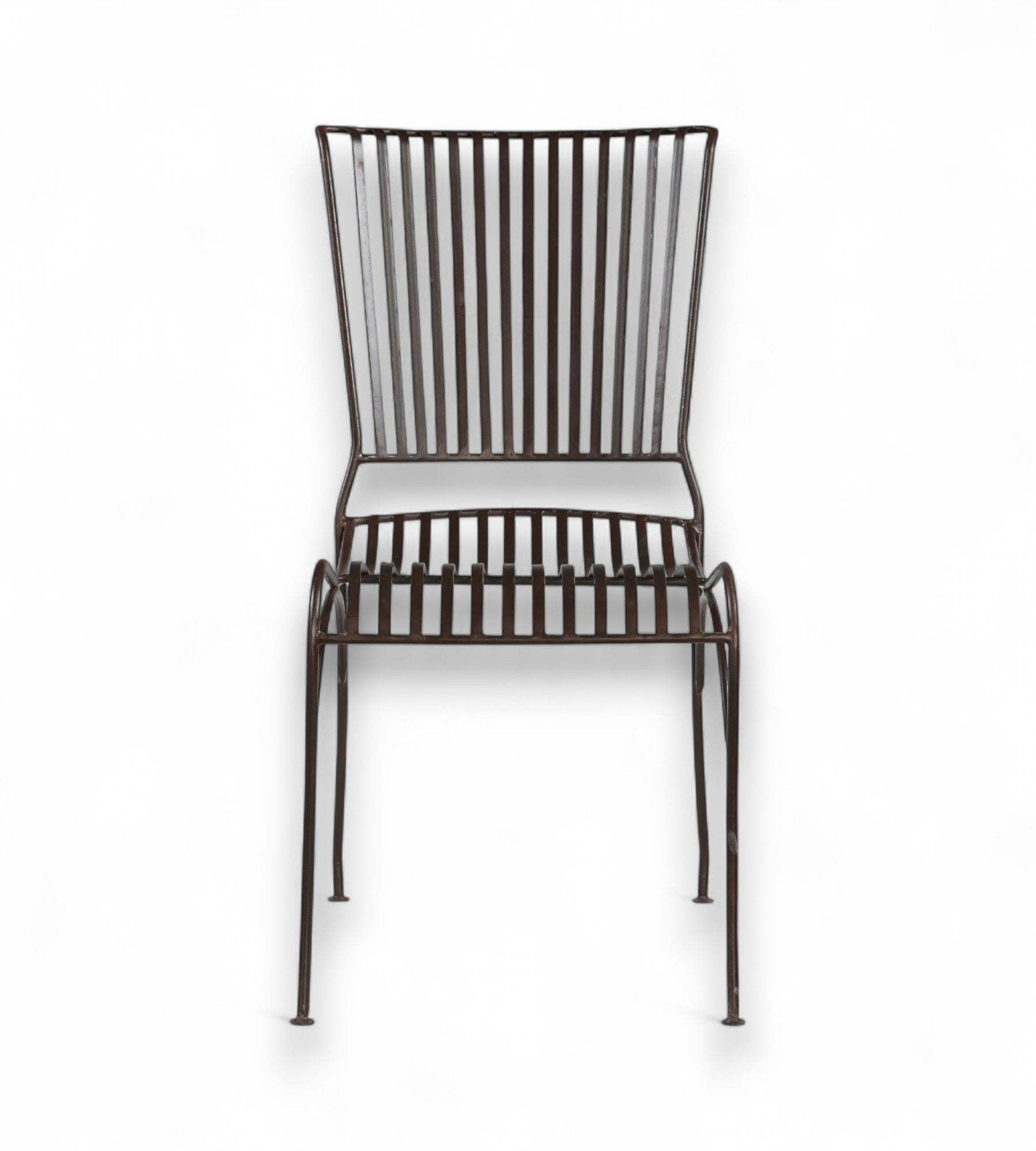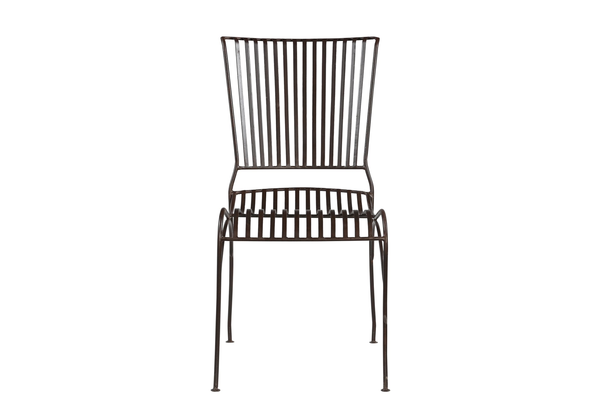 Fabricada íntegramente a mano en hierro macizo en la India, esta silla combina durabilidad y diseño. Su estructura abierta y su asiento ligeramente curvado ofrecen comodidad y estilo a partes iguales.