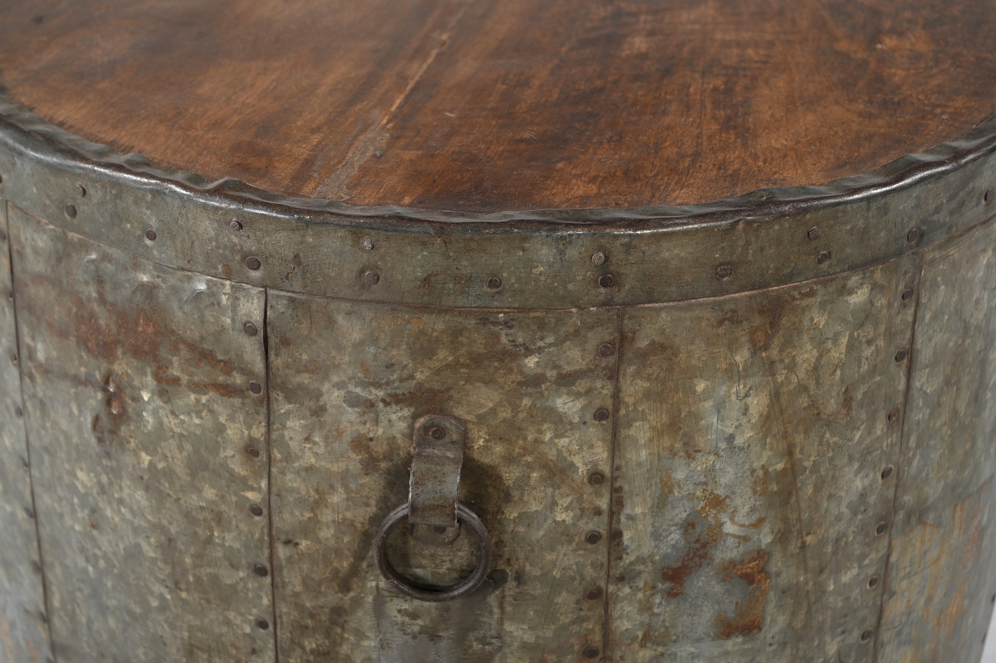 Esta pieza única está hecha de hierro envejecido y rematada con madera de teca. Antiguamente se usaban como barriles de almacenamiento en el norte de la India, pero ahora se han reconvertido en mesas auxiliares. Creemos que quedaría perfecta junto a tu sillón o sofá favorito, o como una mesita de noche escultural.