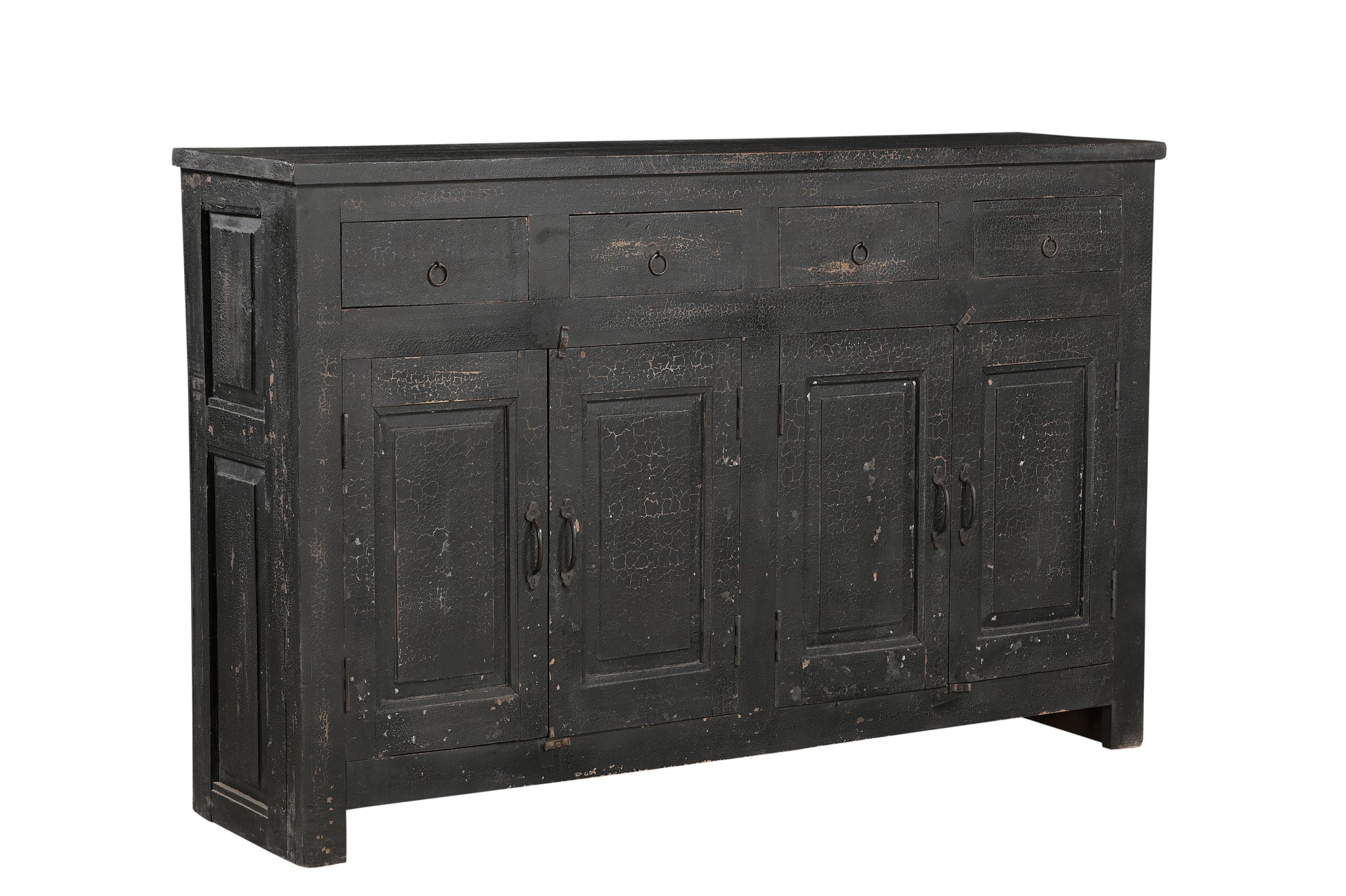 Este elegante aparador tiene una pátina agrietada y un peso silencioso que aporta una presencia profunda a su hogar.