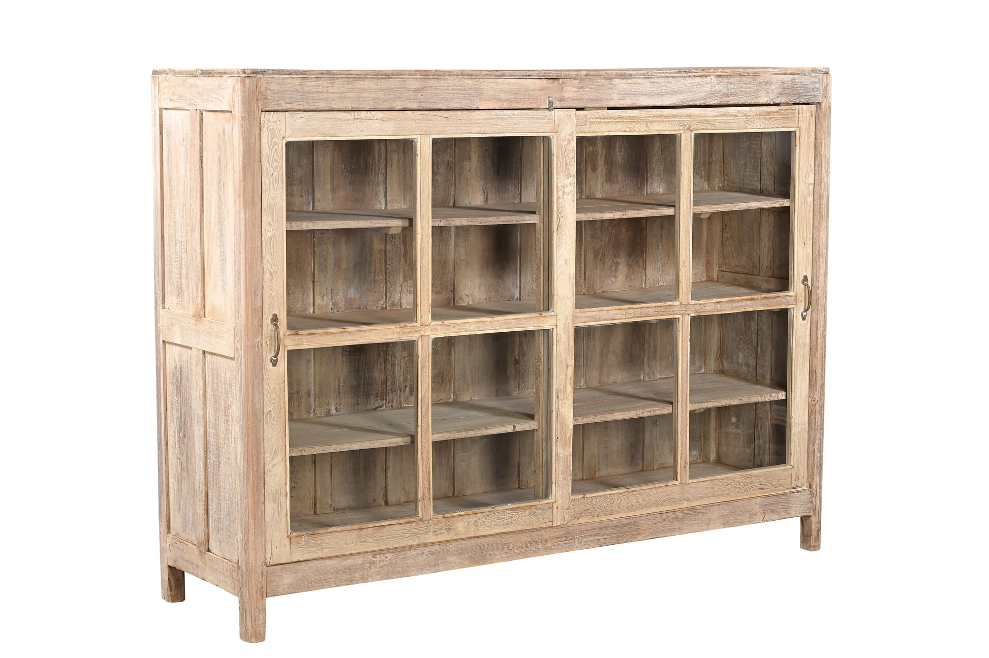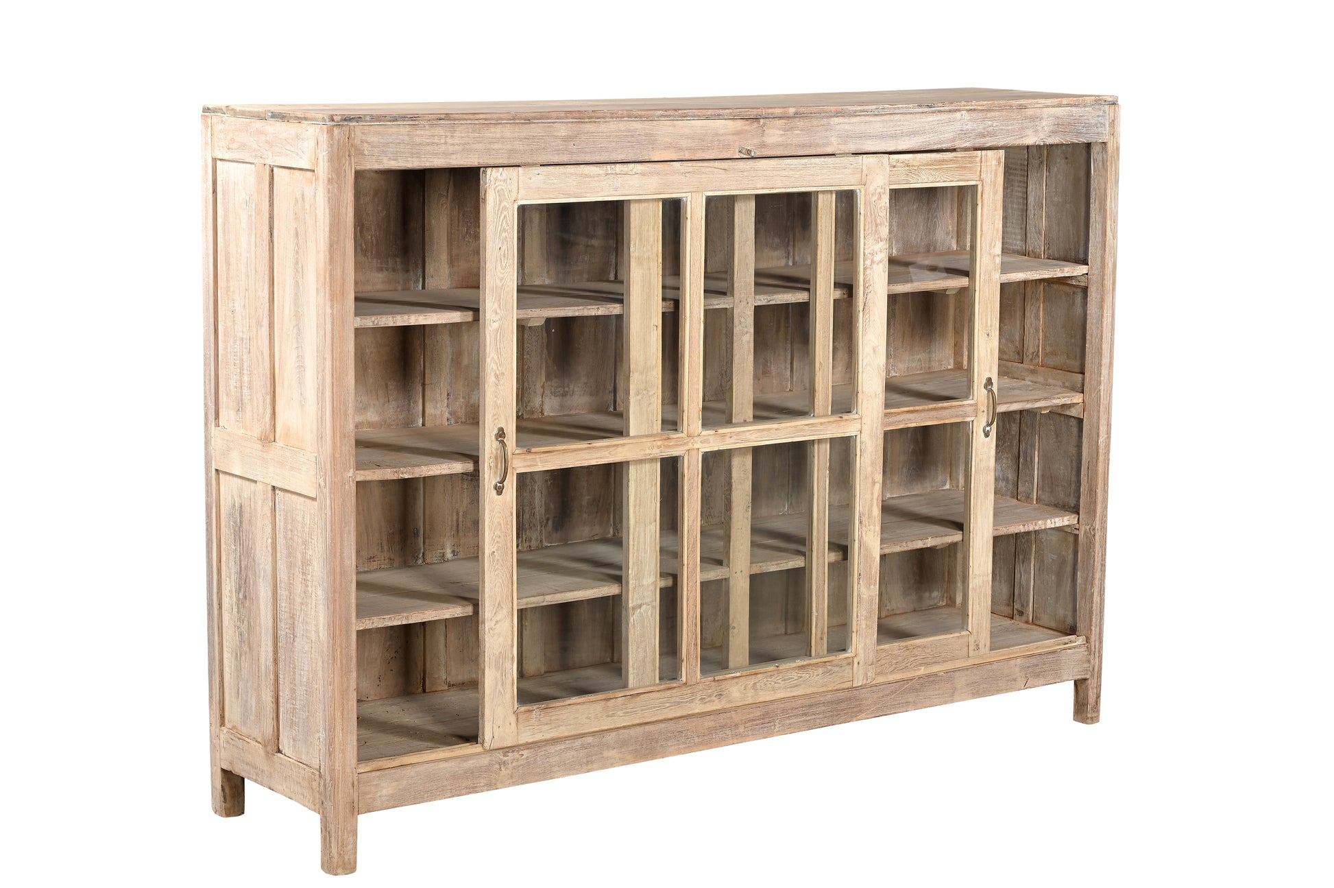 Realza tu espacio con esta exquisita vitrina vintage. Fabricada en la India con madera de teca y adornada con puertas de cristal. Su magnífico acabado en tonos soleados aporta calidez y alma a tu espacio.