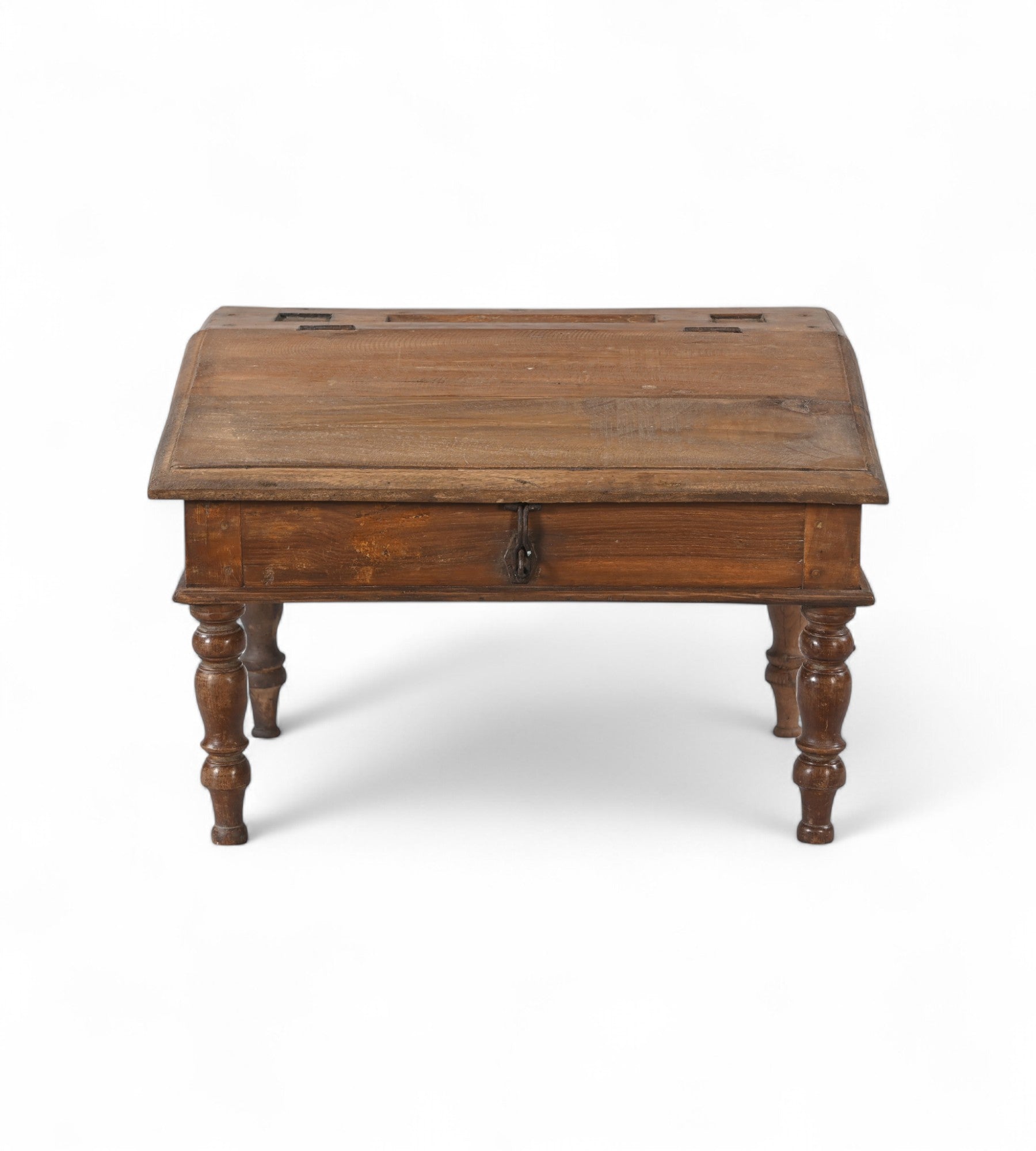 En la India, donde los cálculos se hacían con las piernas cruzadas sobre el suelo, esta pieza única de teca hoy invita al renacimiento.
