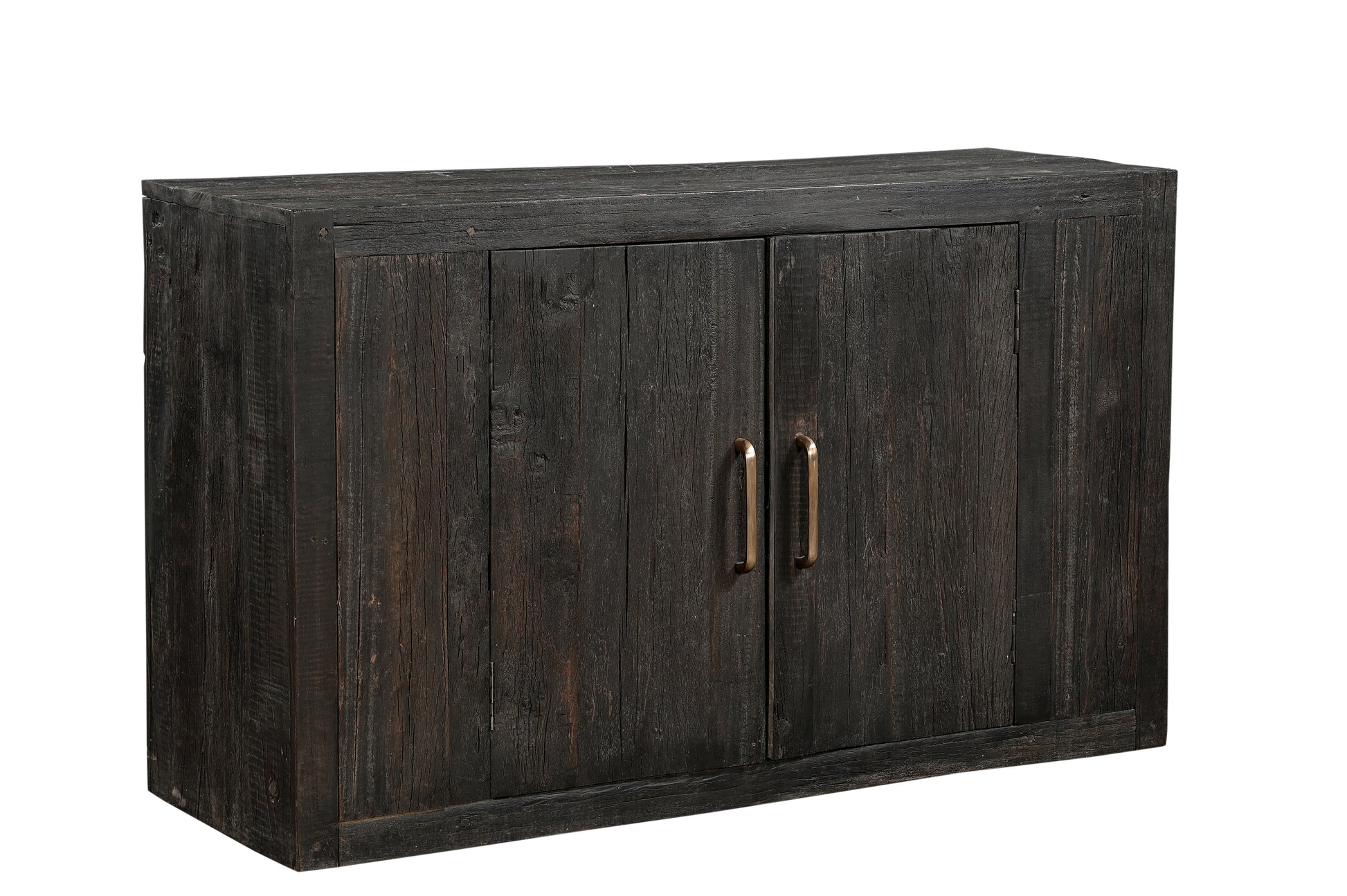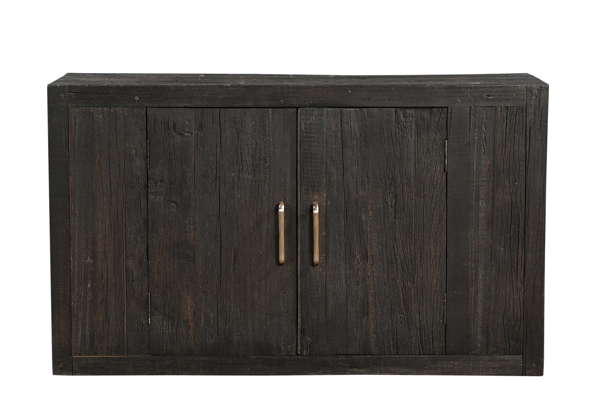This vintage Indian kitchen cabinet is crafted from solid teak and mango wood, finished in a black tone that allows the raw texture of the timber grain to shine through. Its clean lines and balanced proportions make it a timeless storage piece, while the hand rubbed finish and aged brass pulls give it warmth and character.