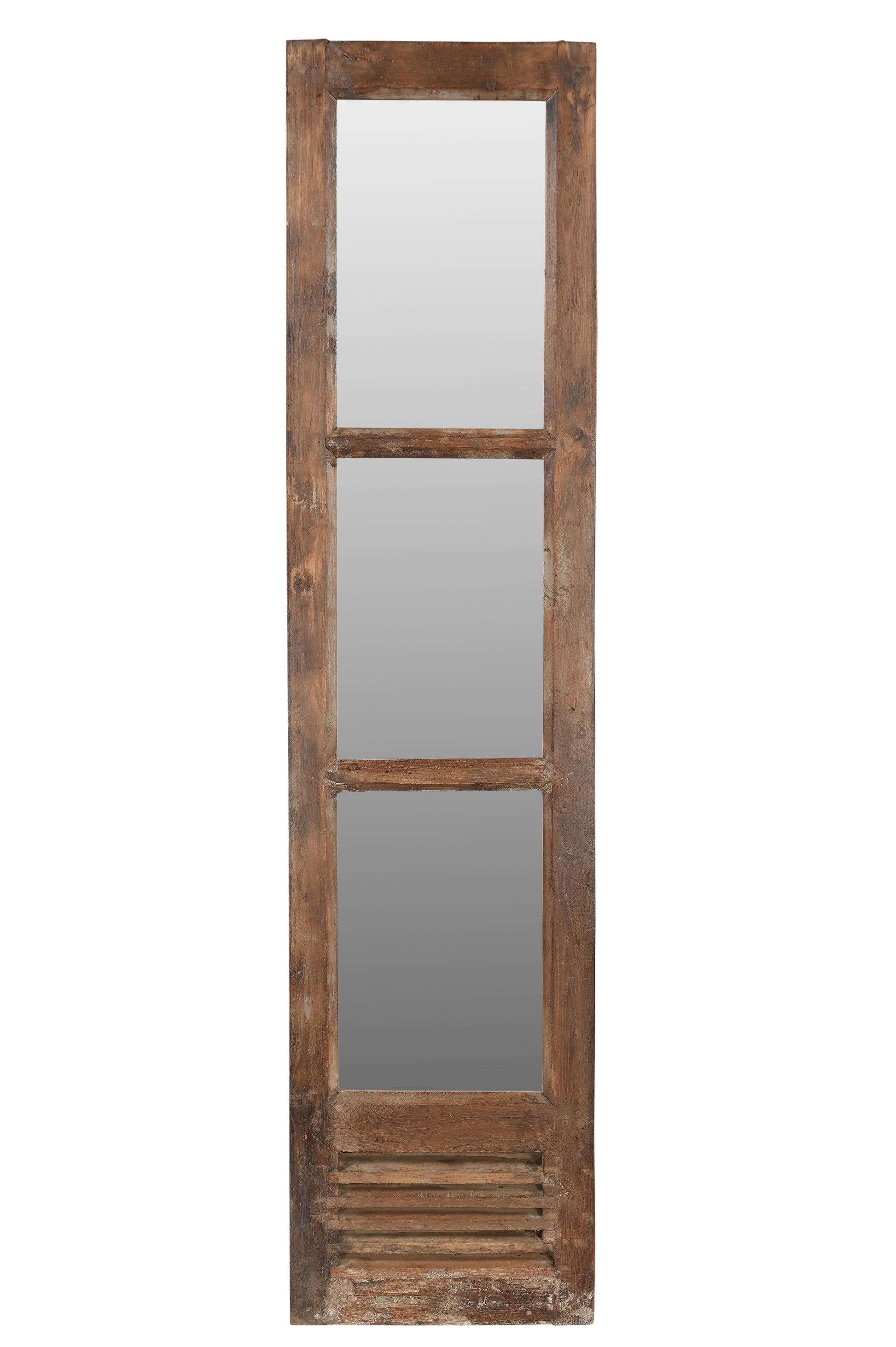 Once a door in an Indian home, this tall vintage teak mirror has been repurposed to bring depth and history to contemporary interiors.