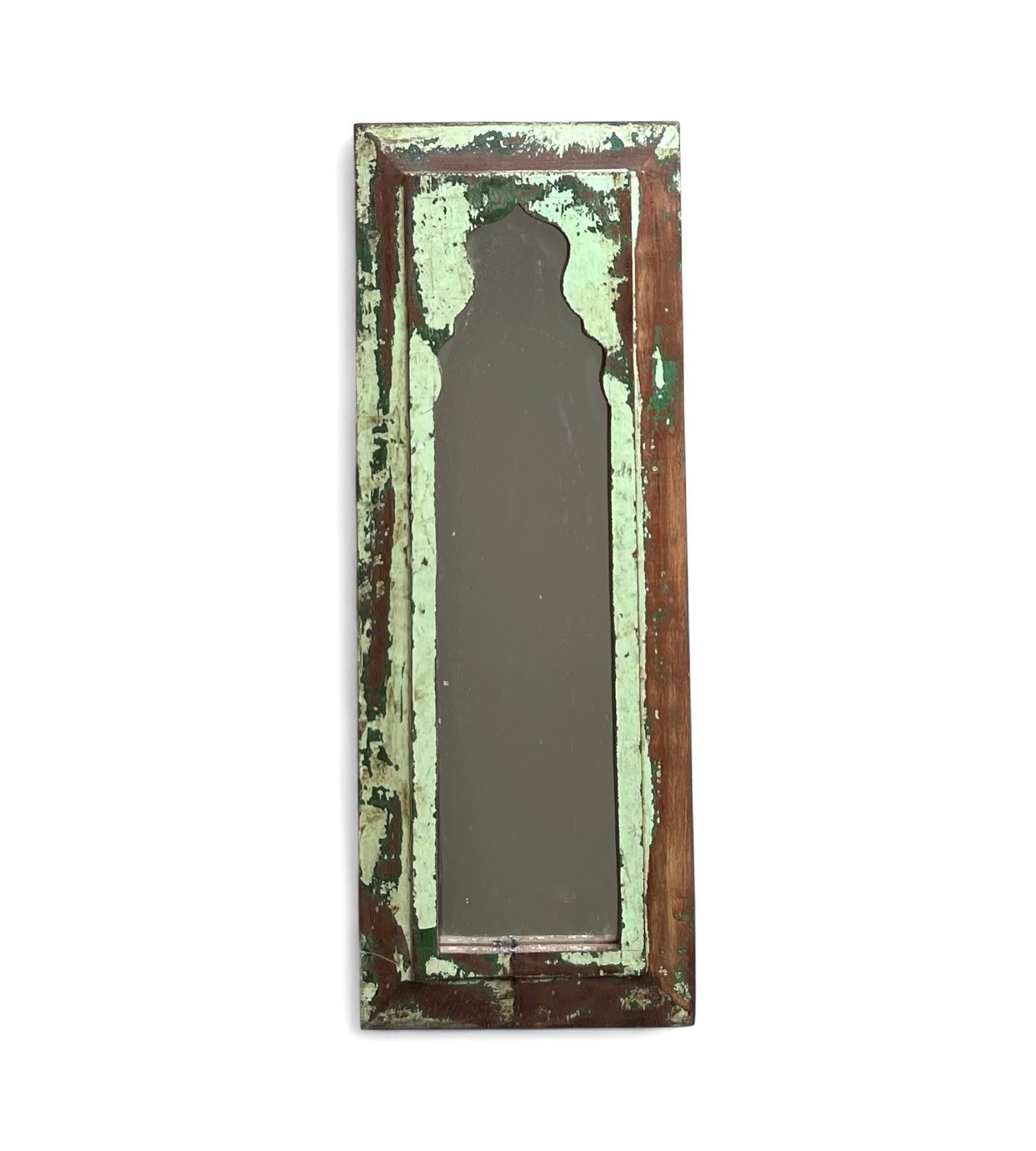 These vintage Indian arch mirrors have been handcrafted from recylced wood. Each mirror is framed with intricately carved wood, its distinctive arch shapes inspired by Rajasthani and Mughal design.