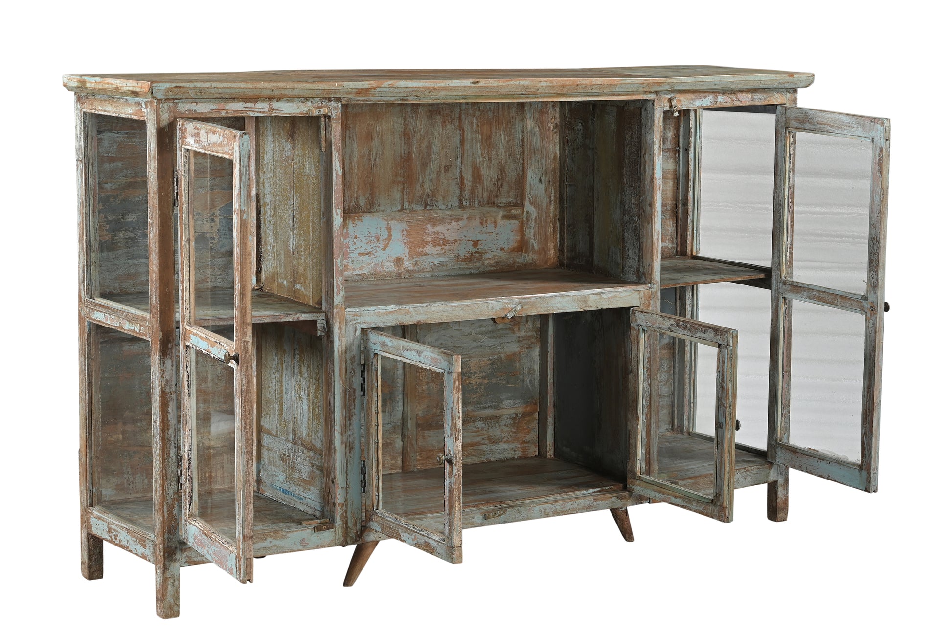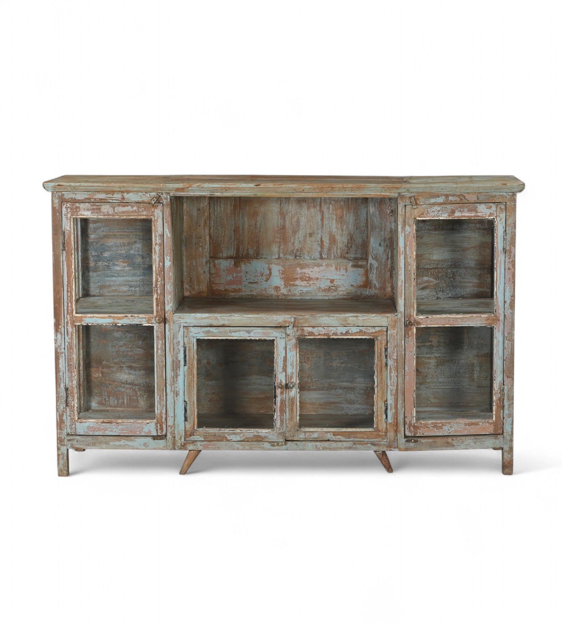 This one of a kind vintage display cabinet is made from teak wood, and salvaged from India. We love its worn yet earthy tones, and distressed hand wash finish generating warmth, depth and a serious presence to your interior space.