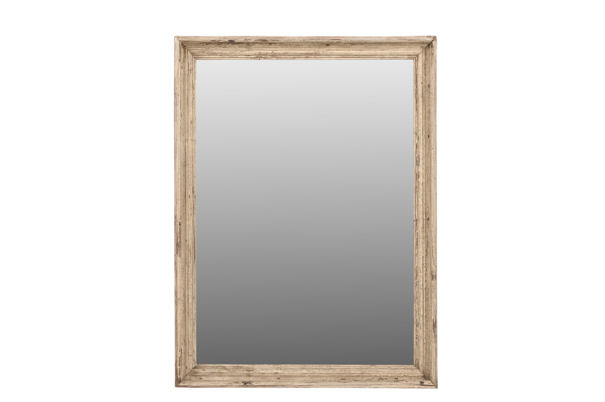 Framed in Indian teak this mirror with its pale, weathered finish gives a light and airy feel to as space.