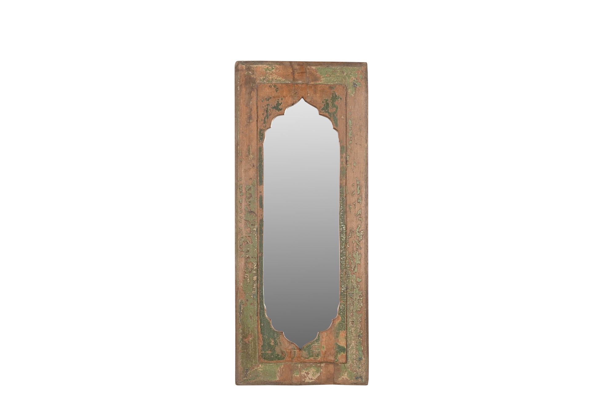 With its pointed arch and narrow shape this vintage mirror draws inspiration from traditional Indian architecture.