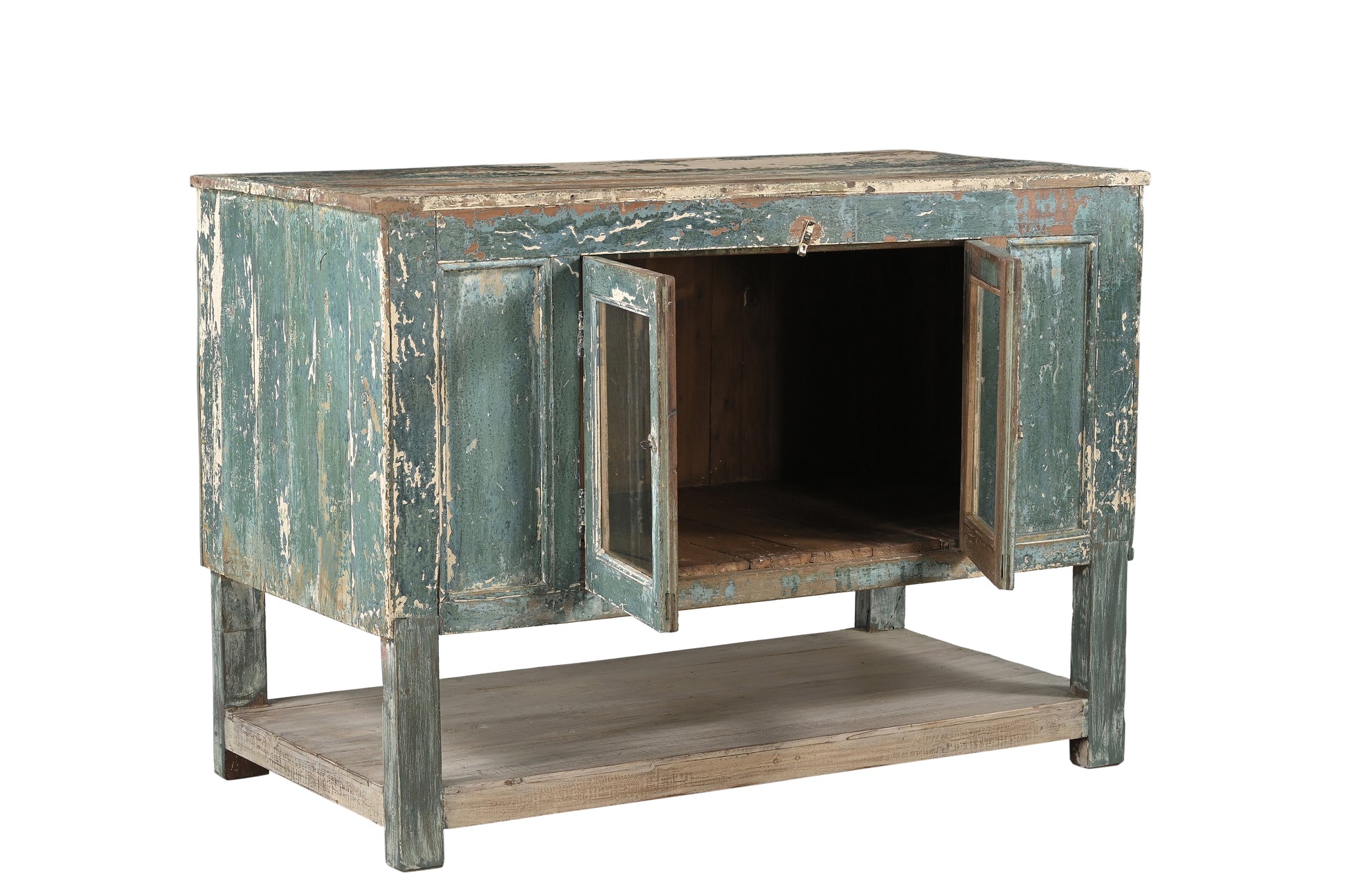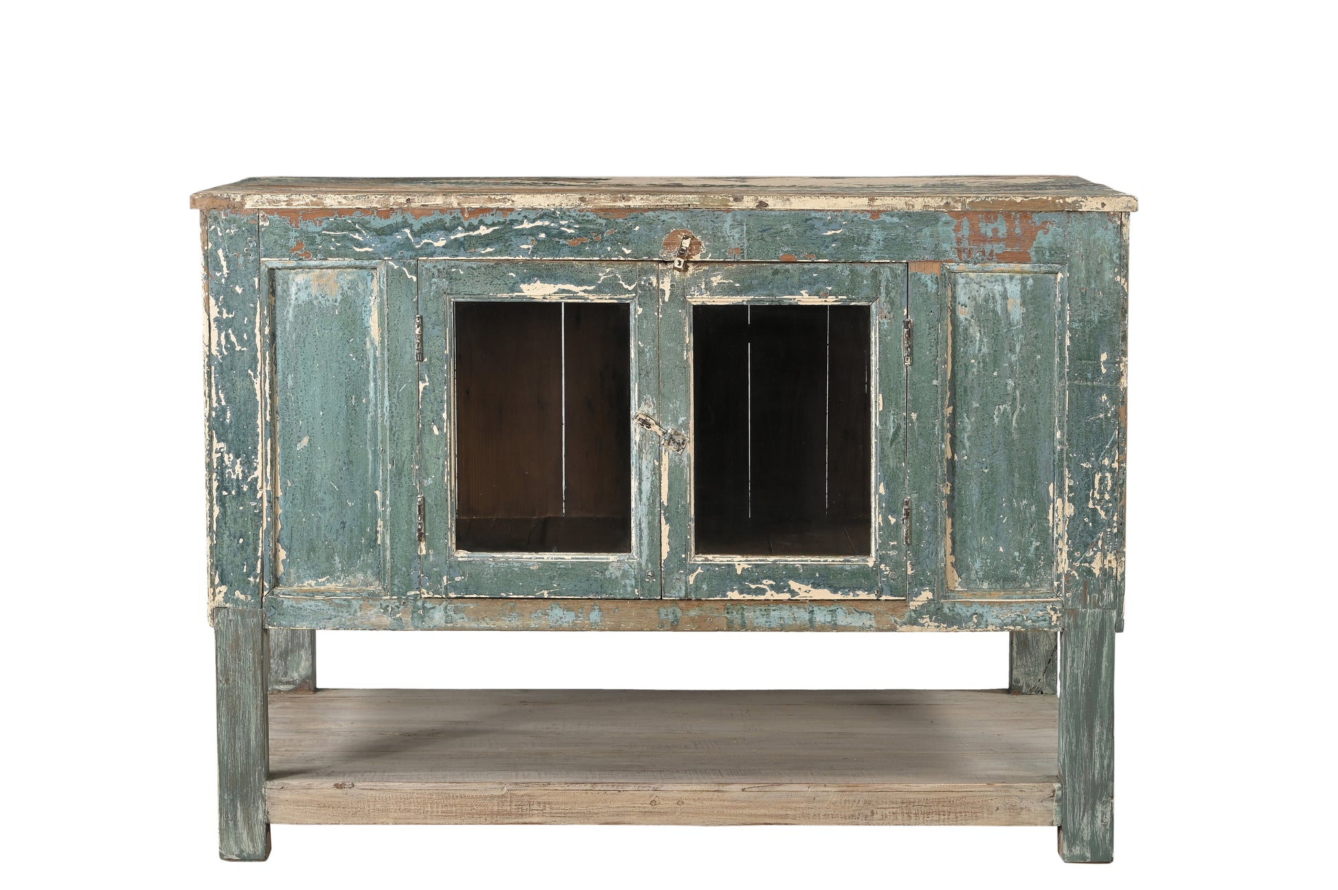 Here at Indoon, we feel the imperfections in the finish of this piece is where its beauty lies. You are able to feel this cabinets previous life through the faded distressed patina, its rugged texture and faded tones. It has a gorgeous sea green finish, instantly giving a space depth and character.