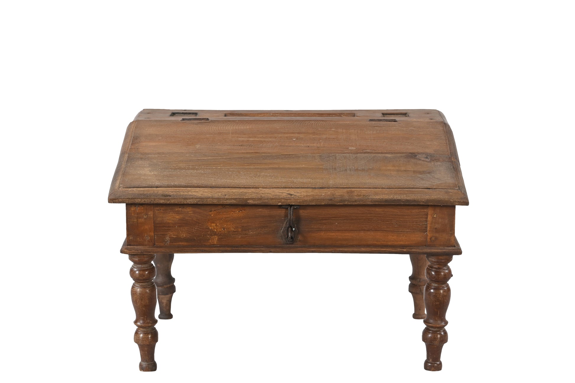Once a shop keepers desk In India, where calculations were made cross legged on floors - this unique teak piece now invites rebirth.